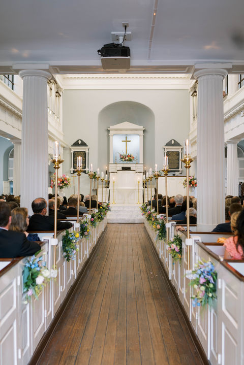Bride Jill exudes happiness and the same can be said for her wedding day. Guests were blown away by the stunning ceremony featuring the University of South Carolina ensemble at the classic First Baptist of Charleston. Once they made their way to the beautiful Lowndes Grove they were greeted by refreshing cocktails to beat the heat on this gorgeous July evening in Charleston. The AC was blasting inside their tent full of gorgeous cheerful flowers and a band that kept guests on their feet all night long!